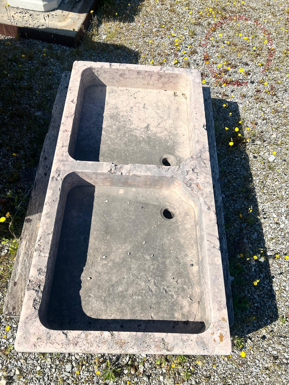 Lavandino doppio in marmo rosa