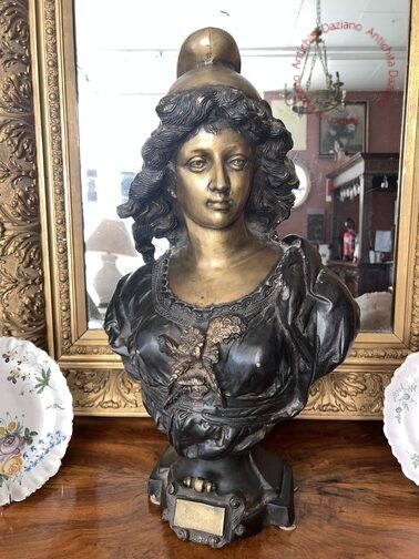 Mezzo busto in bronzo, raffigurante una figura femminile. Ideale per ambienti d’arredo eleganti e raffinati....