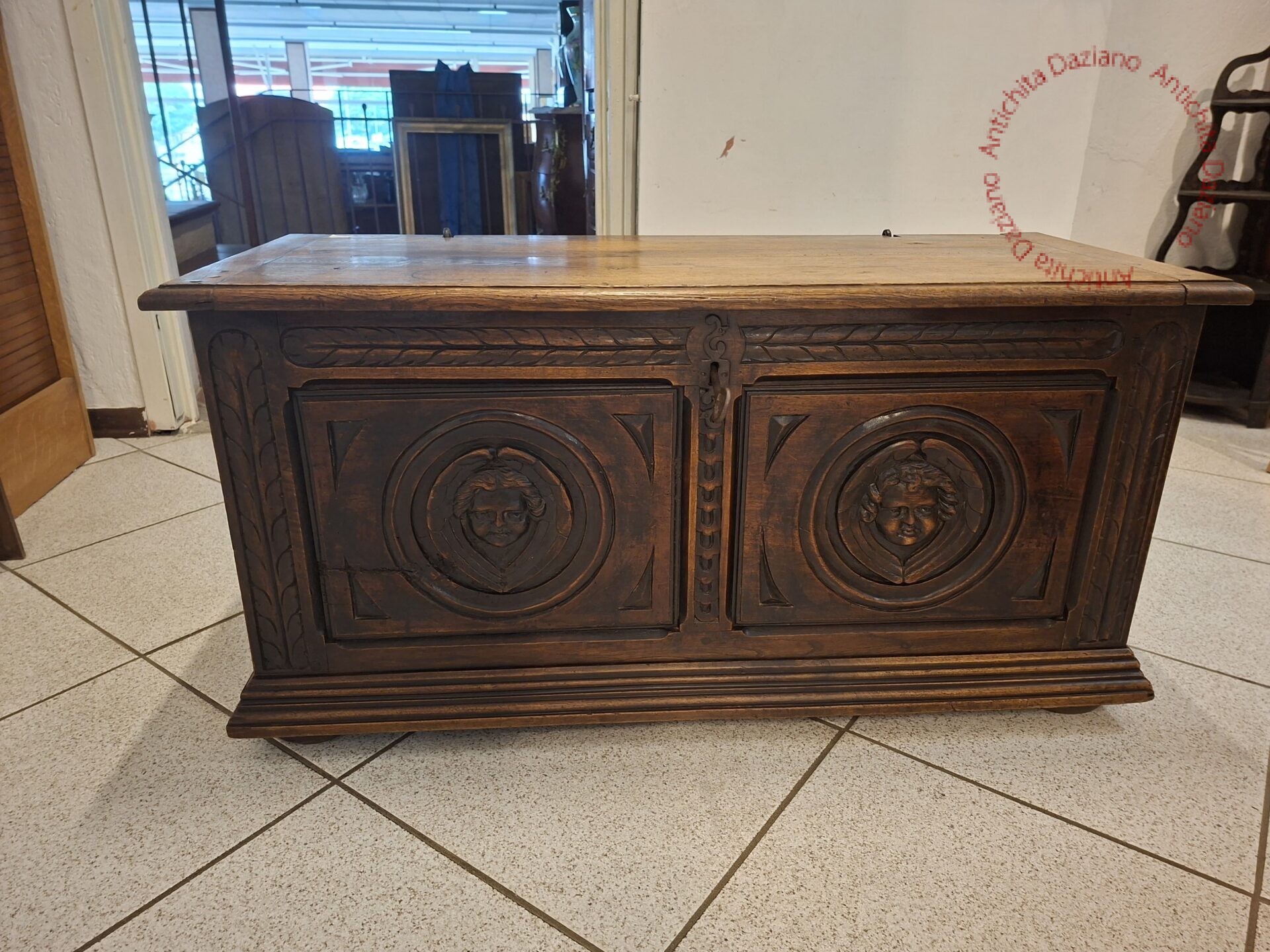 La facciata presenta due volti scolpiti, serramenti originali.