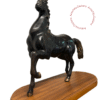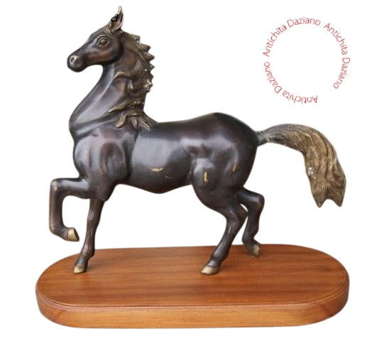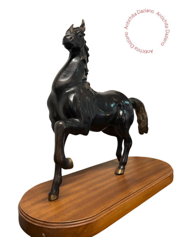 Cavallo in bronzo con la base in legno.