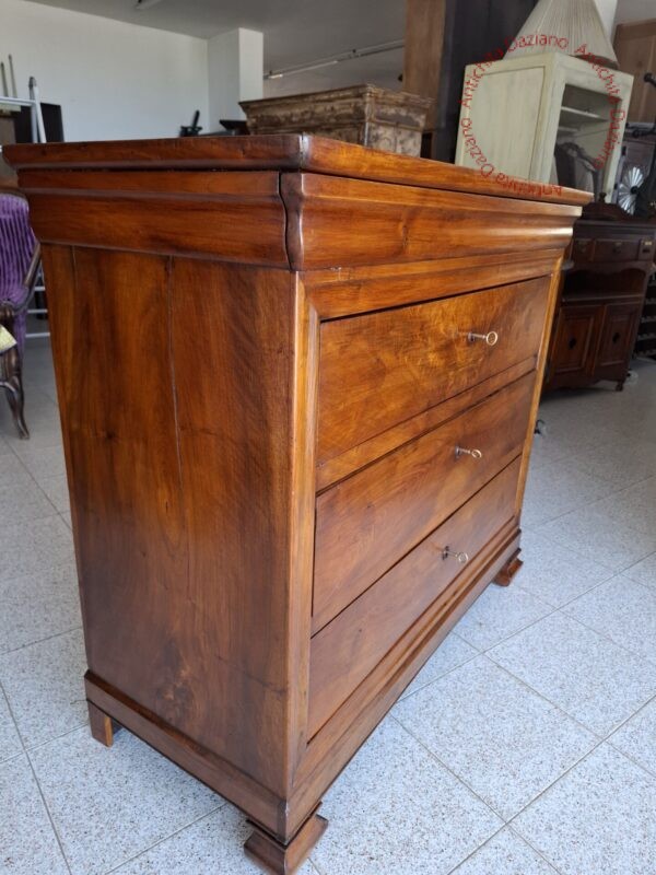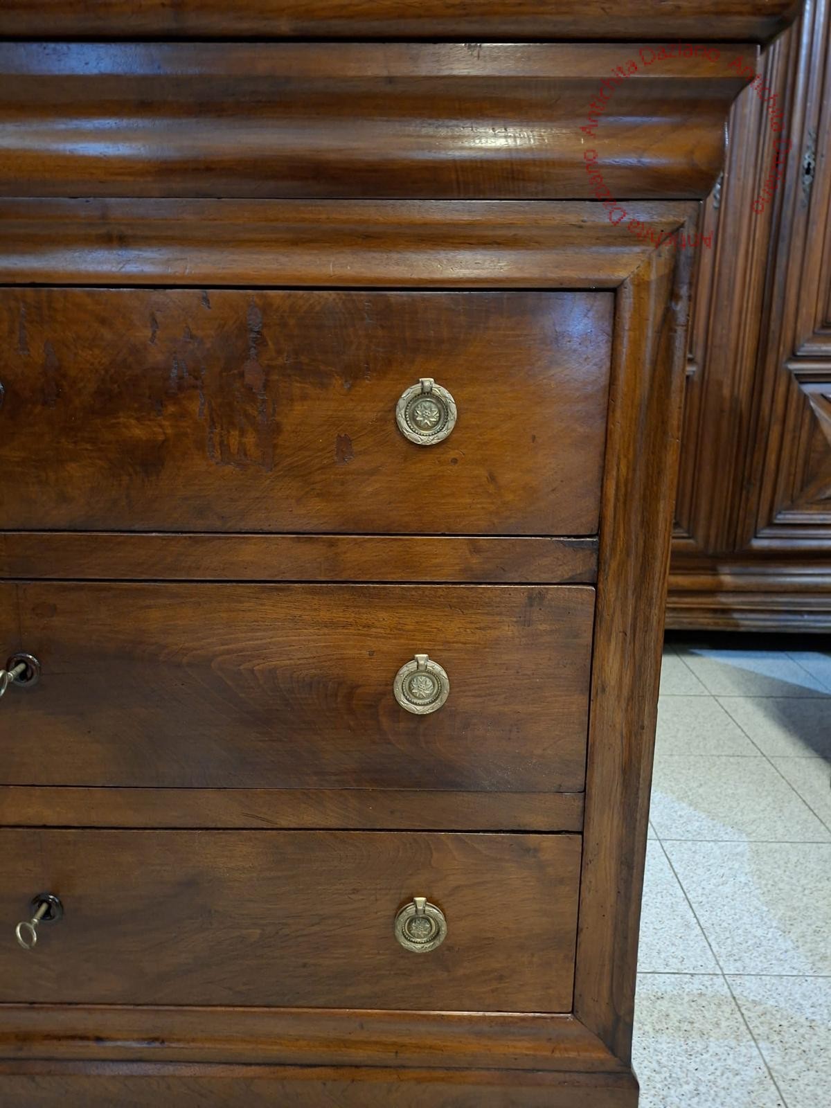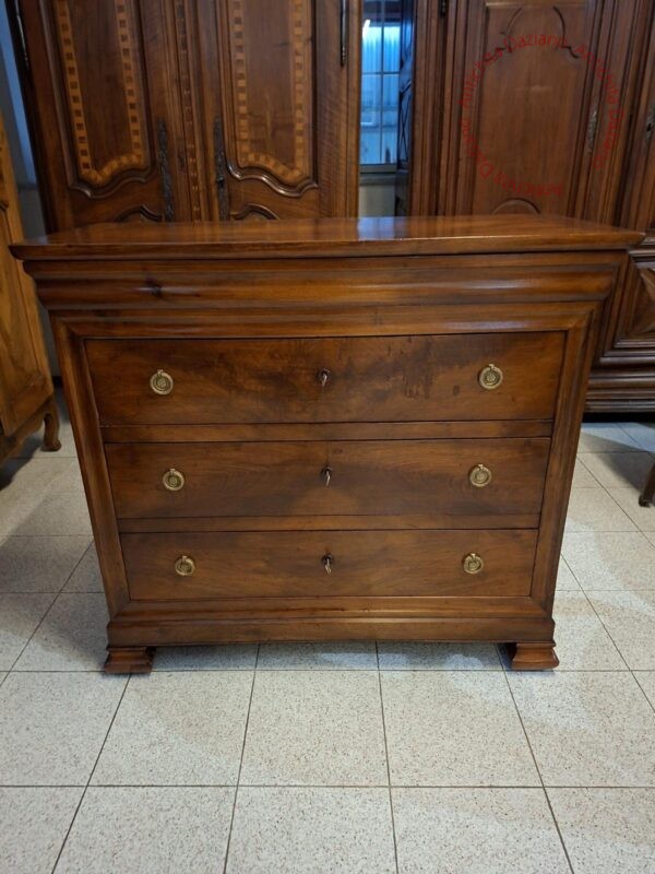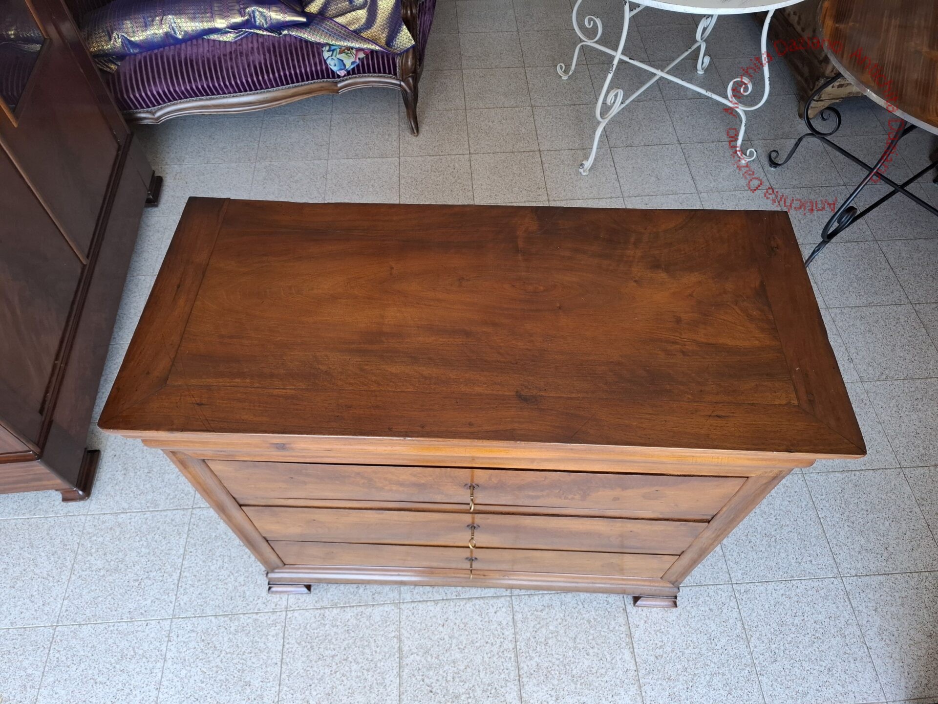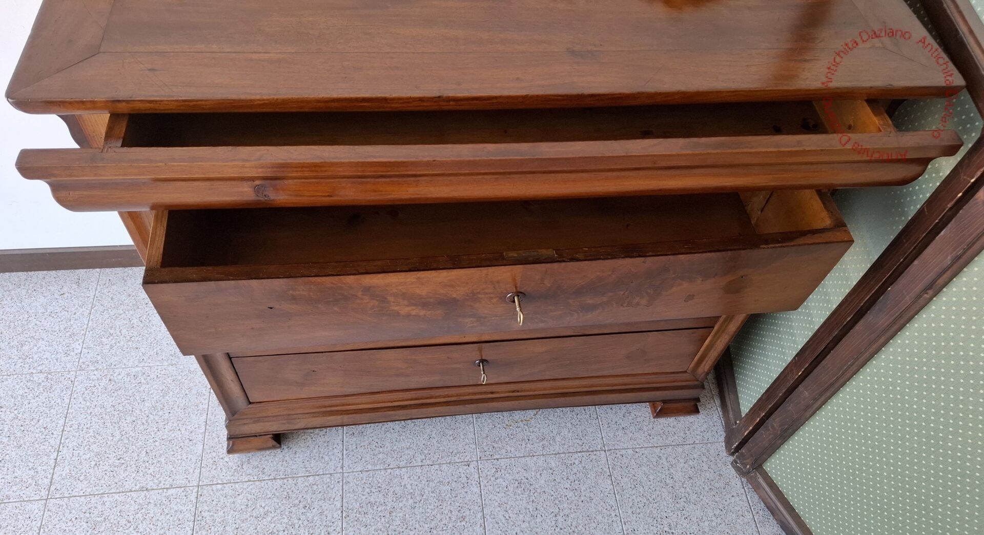 in noce, con 3 cassetti grandi ed uno a scomparsa, restaurato.