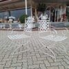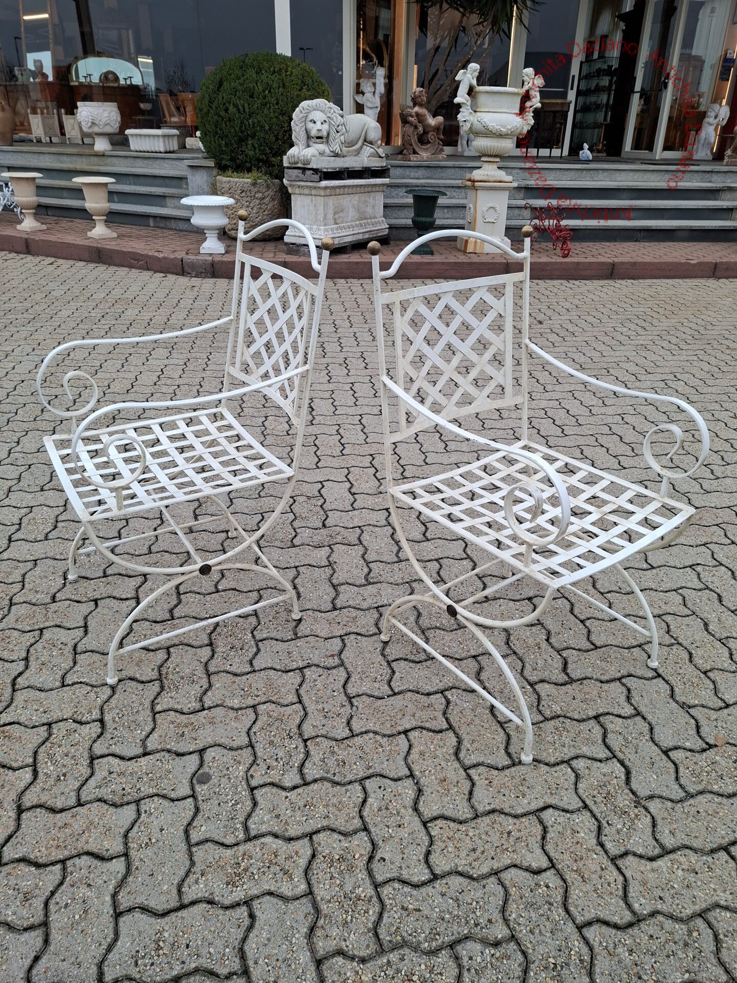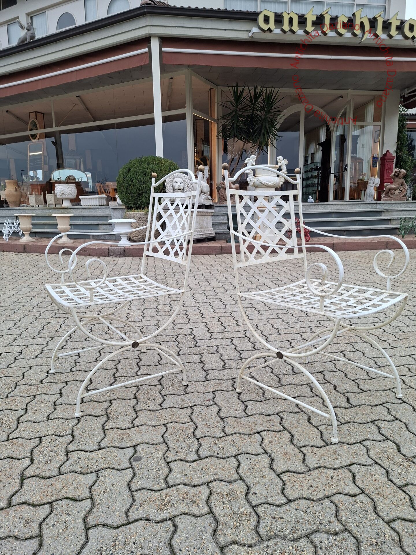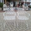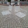 Tavolo con sei sedie e due poltrone in ferro battuto