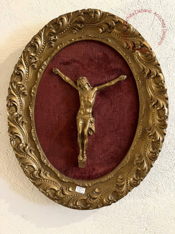 Quadro con cornice dorata e Cristo crocifisso.
