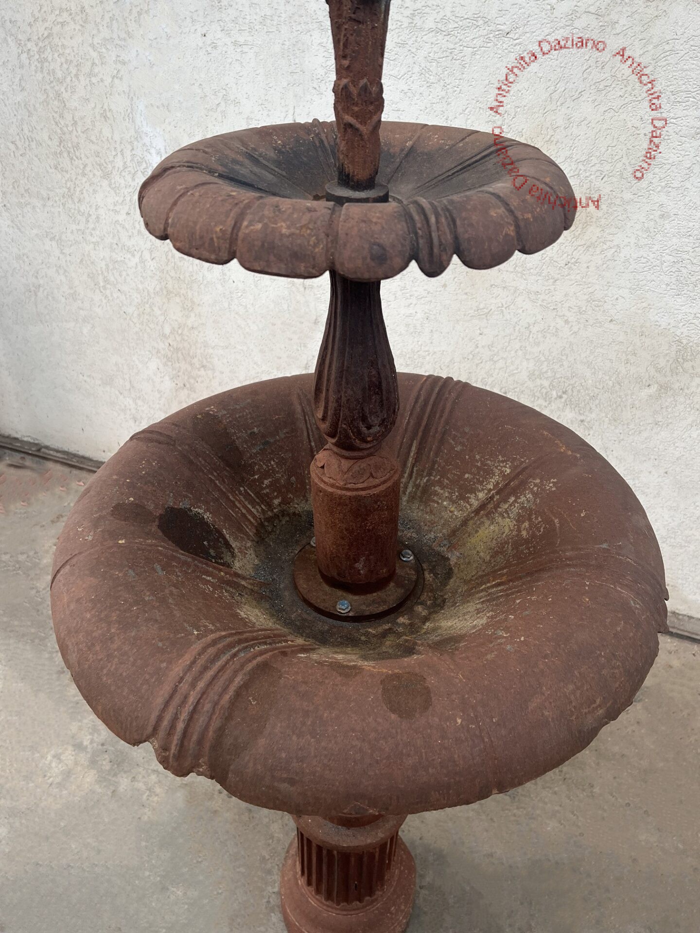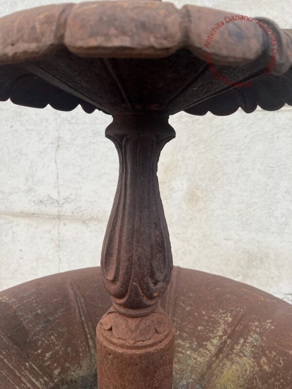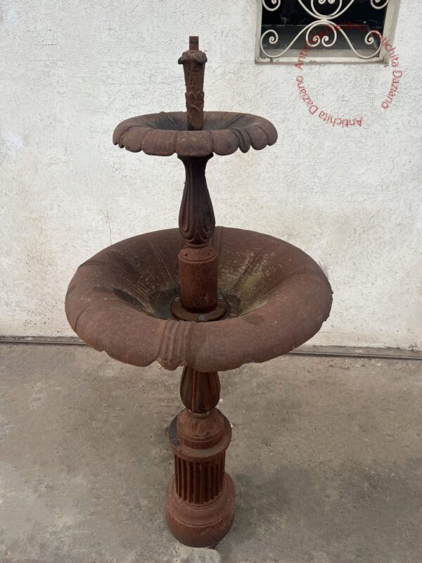 Dimendioni: ⌀ 75 cm vasca maggiore, ⌀ 38 cm vasca minore, altezza 105 cm 1ª vasca , altezza 145 cm 2ª vasca , altezza tot. 160 cm.