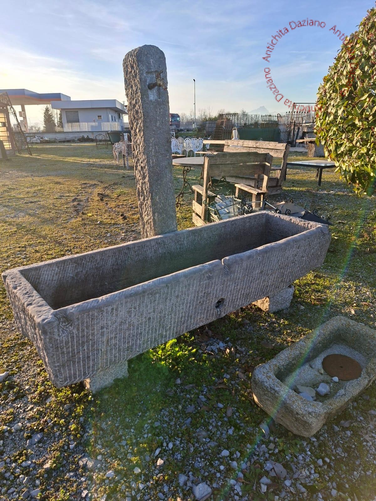 Fontana vasca con piantone in pietra