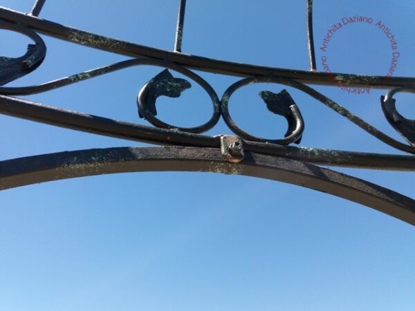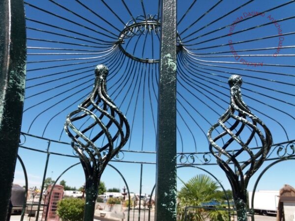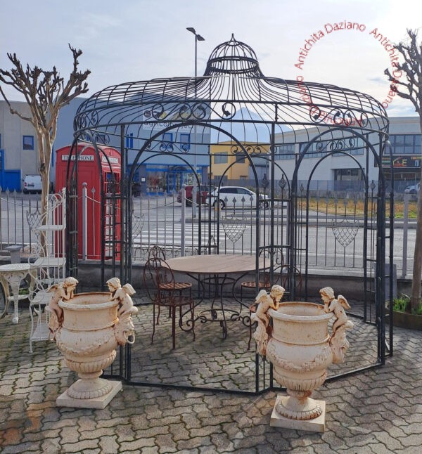 stile Liberty con inserti forgiati a torciglione, completamente smontabile, pianta ottagonale.
