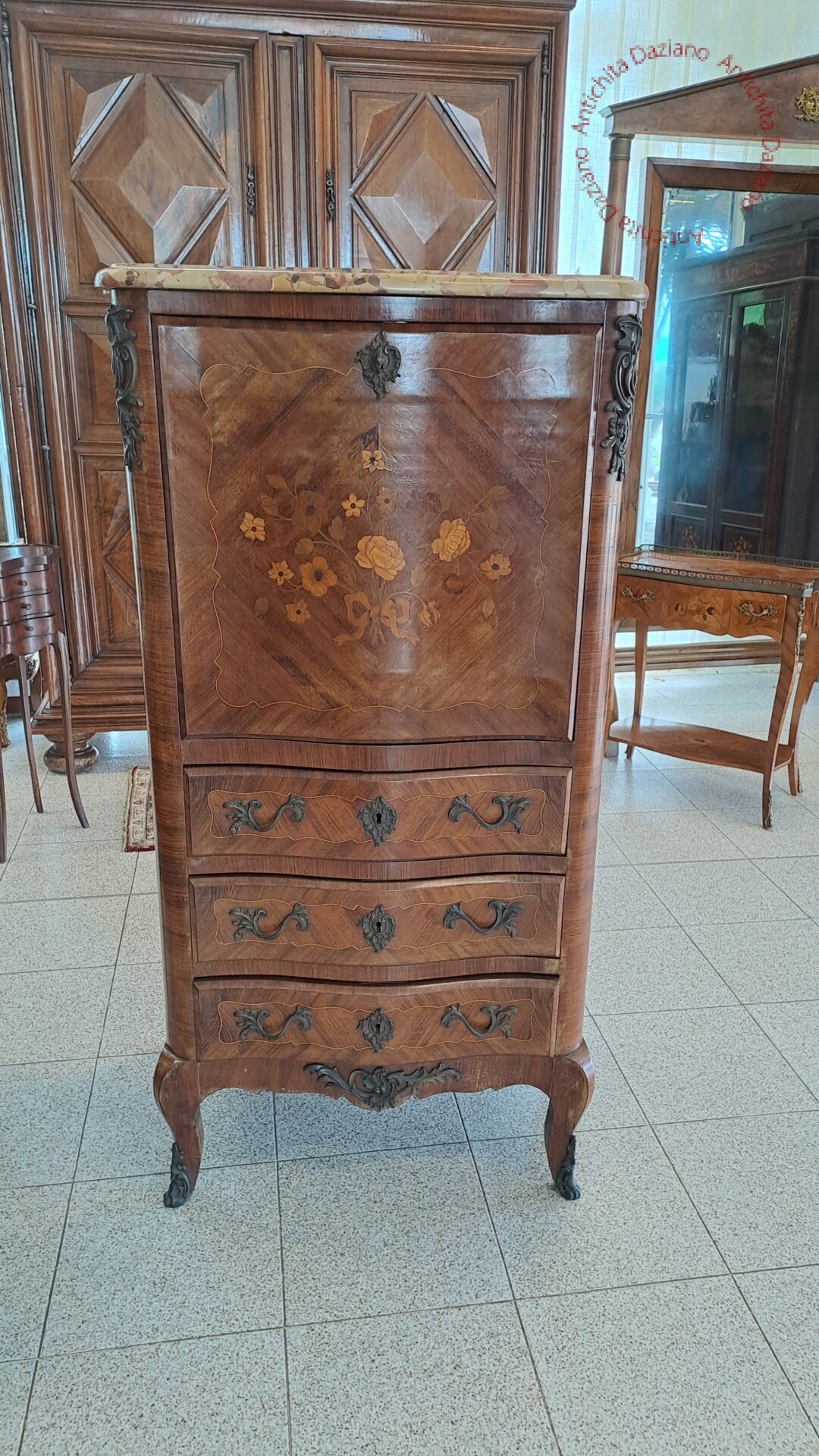 con intarsi, bronzi e marmo originali.