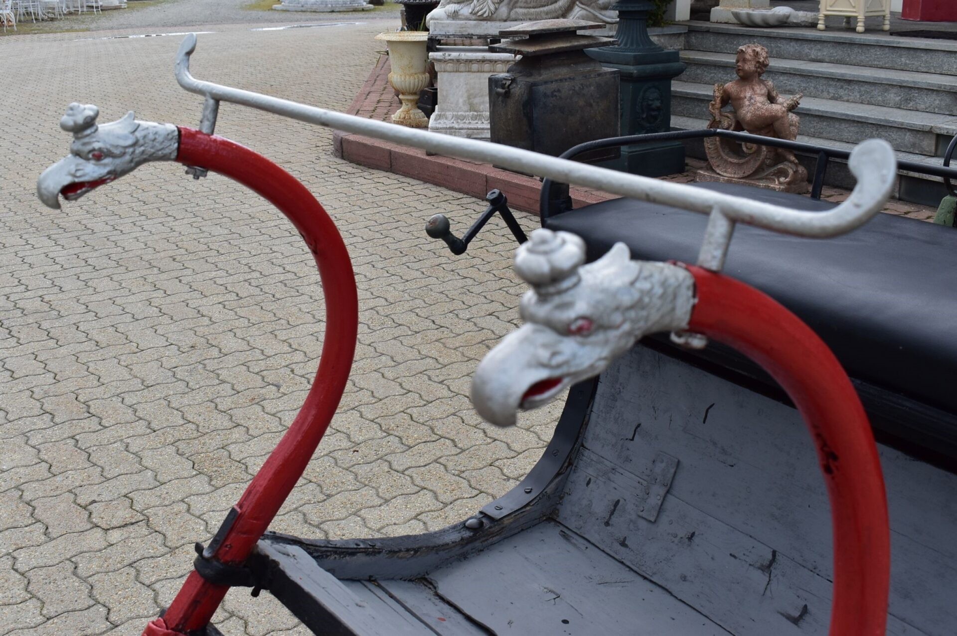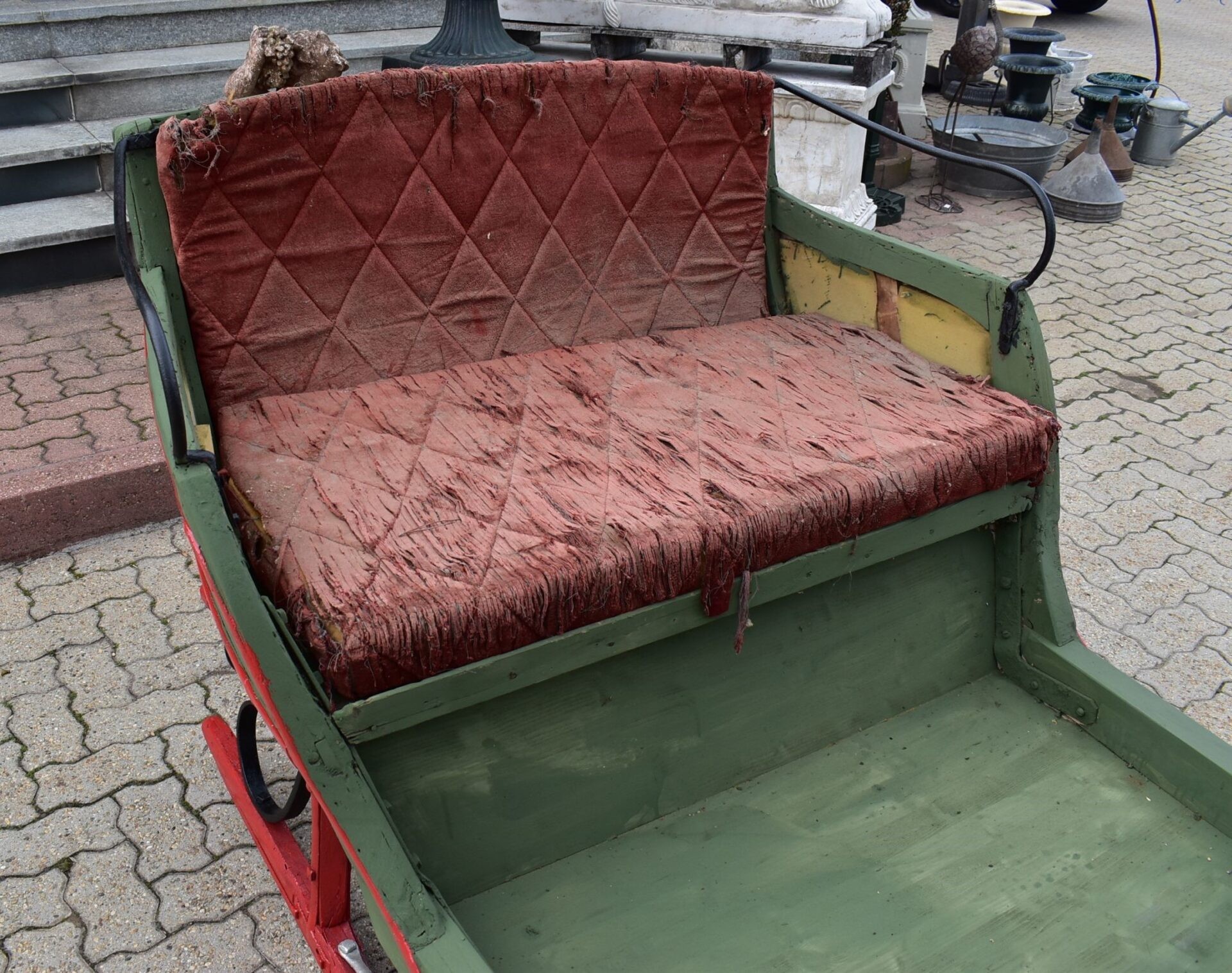 Slitta autentica in legno, ferro, velluto, restaurata.